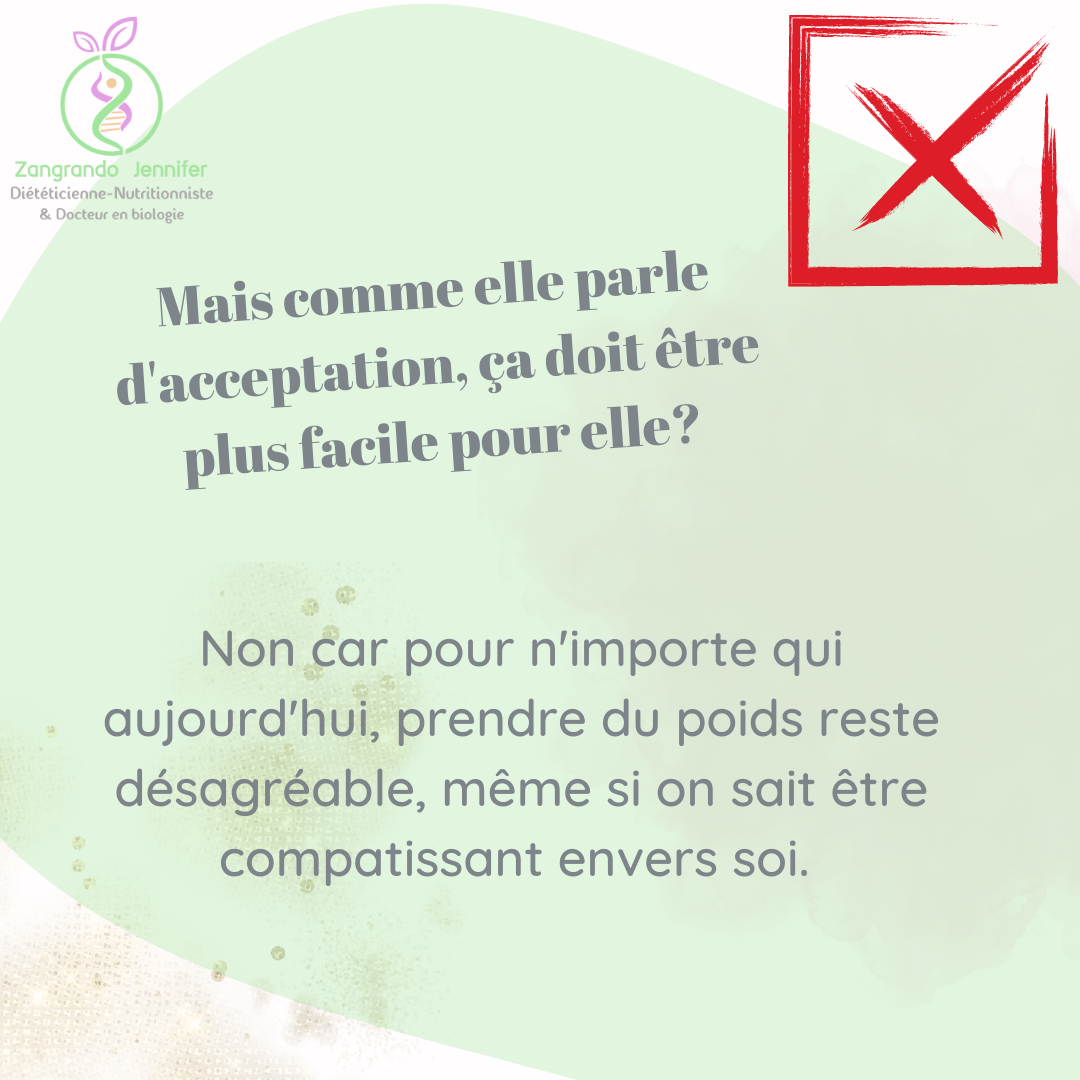 A la place, on apprend qu’il faut de la volonté pour perdre du poids, de la motivation pour faire du sport, de la lutte pour être la meilleure version de soi-même, le fameux « no pain, no gain ». L’autocompassion n’a pas sa place. Elle est apparentée à « se trouver des excuses pour ne pas faire ».